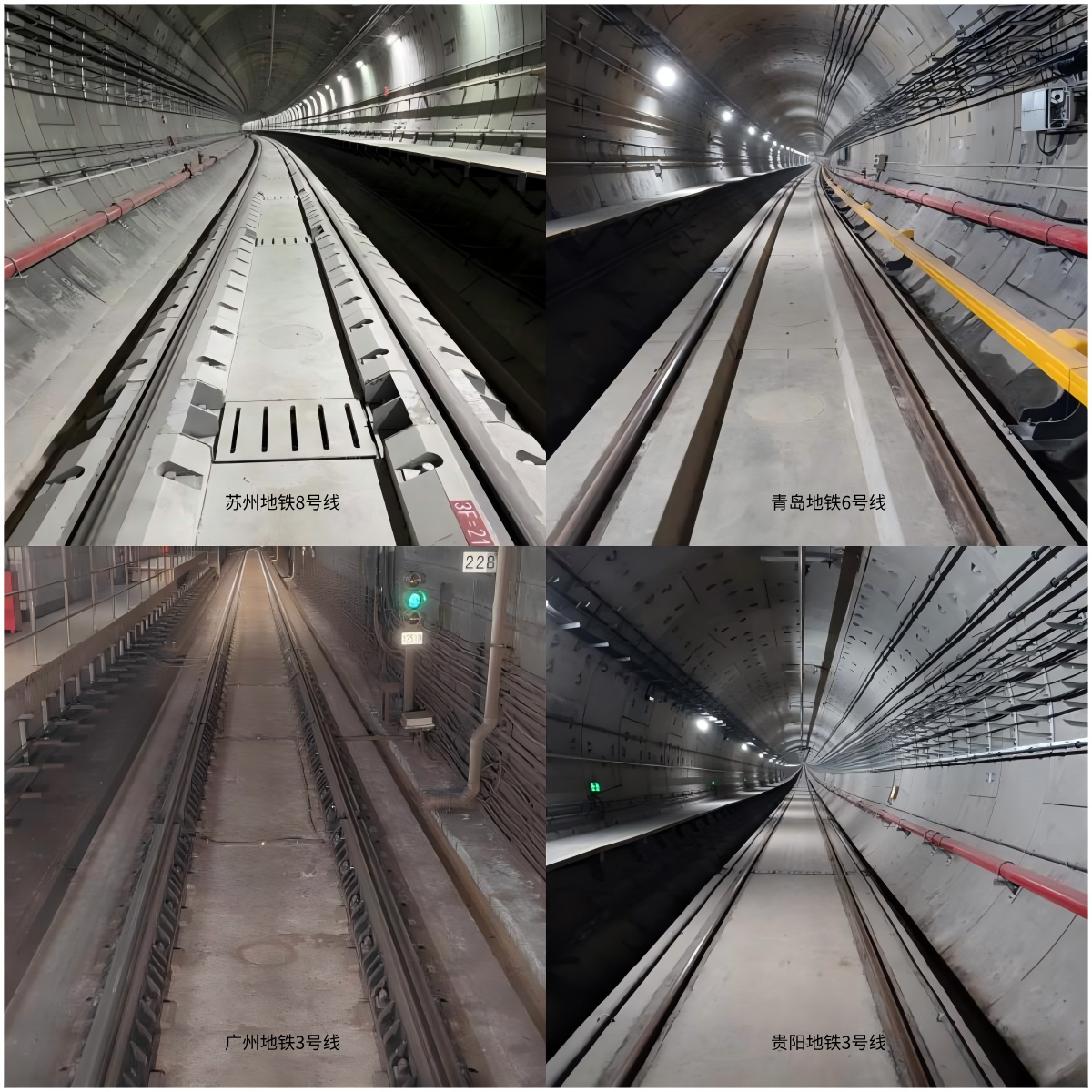 目前,該系統已在廣州地鐵、蘇州地鐵、青島地鐵、福州地鐵等多個國內城市軌道交通線路中得到成功應用。實際運營數據驗證,其減振降噪效果達到國際先進水平,取得了顯著的環境與社會效益。